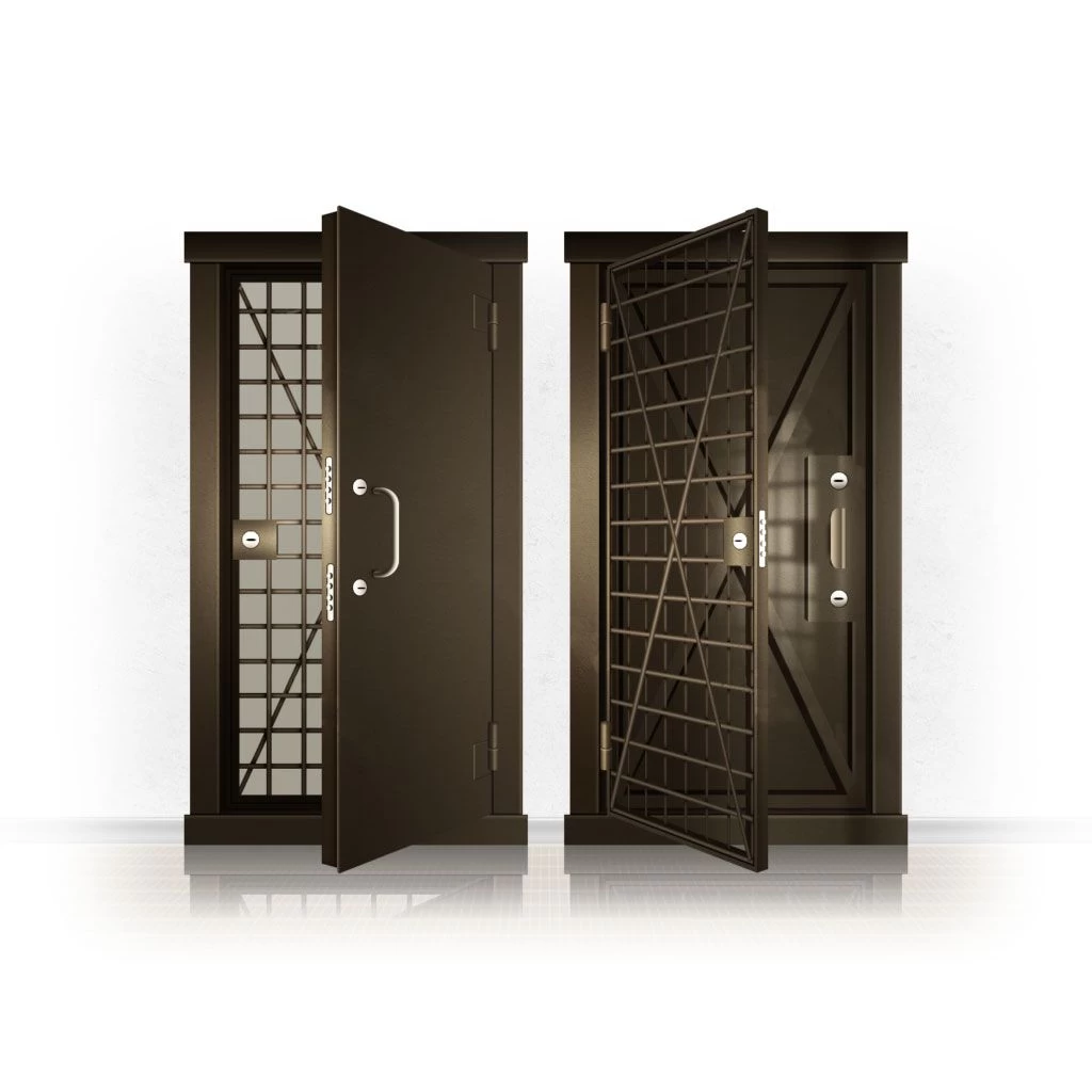 Металлические двери КХО и КХН представляют собой входные блоки, обладающие высоким уровнем взломостойкости и состоят из трех основных элементов: усиленного каркаса, сплошного металлического полотна и решетчатой двери. Дверной блок изготавливается из стального уголка 100*100 мм. Места крепления блока к стене цементируются и закрываются стальными наличниками шириной 40 мм. Крепеж заходит вглубь стены на 80 мм. В конструкции внешней створки монтируются ребра жесткости, для обшивки используется сталь толщиной не менее 3 мм. Внутренняя решетка изготавливается из прутка диаметром 16 мм. Размер ячеек решетки должен составлять не более 15 на 15 см. В точках пересечения прутья надежно приваривают друг к другу. В КХО и КХН необходимо поддерживать определенную температуру и влажность. Для этого внутреннее пространство глухой двери заполняется теплоизоляционным материалом, а по периметру двери приклеивается уплотнитель. Такие двери оборудуются замками с повышенным уровнем взломостойкости. Специализированные двери КХО и КХН в Валдае могут быть оснащены сигнализацией, в конструкции могут быть проушины для навесного замка и элементами для опечатывания. Если идет речь о двери в комнату хранения оружия, в створке оборудуется окно для выдачи оружия и спец. средств, которое накрывается стальной дверцей.